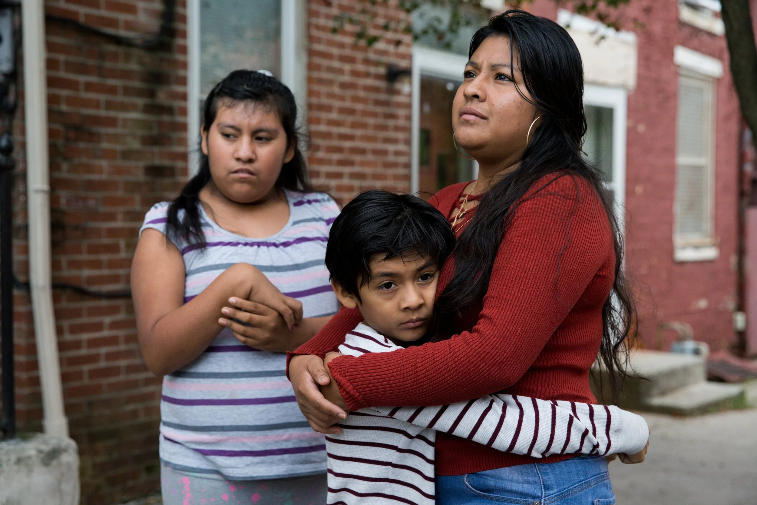 Belén Cruz stands with her children Natalie, 12, and Carlos, 8, outside of their home in York, Pennsylvania on September 18, 2020. Natalie has had trouble logging in to her school's online learning platform, and Carlos has not yet received a laptop from the school. They represent many families who are struggling with at-home learning during the COVID-19 pandemic. (For Reuters)